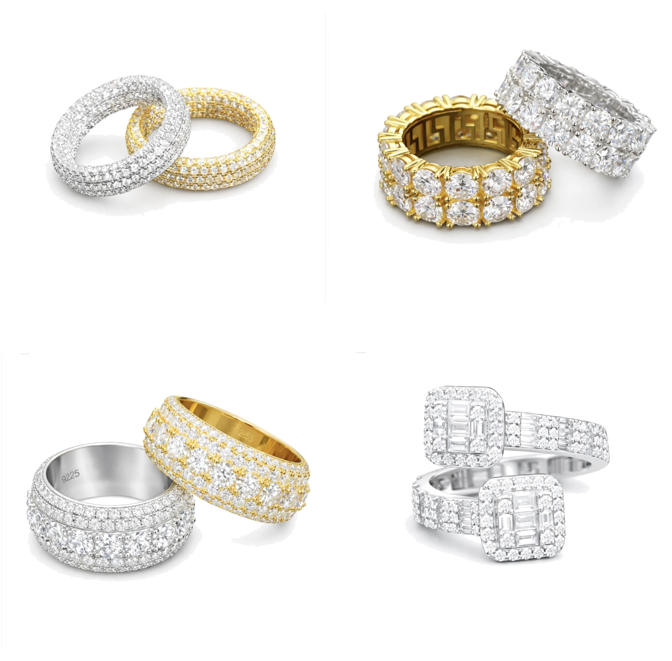 Rings are where the details hit hardest. Each piece is crafted in white gold and finished with meticulously set stones for depth, brilliance, and long-lasting shine. From clean bands to fully iced silhouettes, these rings are designed to feel substantial without being loud. Stack them, mix finishes, or let one carry the moment. Refined, balanced, and built to be noticed—this is everyday luxury done right.