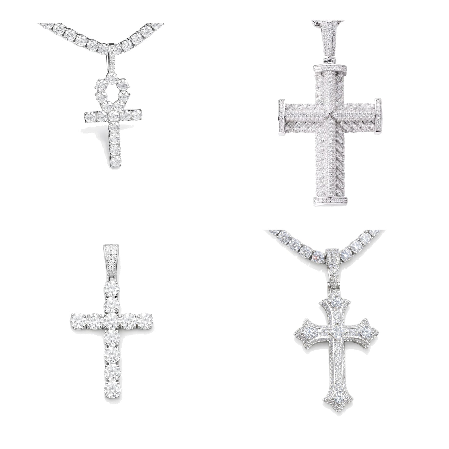 Pendants are the detail that separates good from elite. Each piece in this collection is crafted in white gold and finished with precisely set stones for maximum clarity and shine. From refined crosses to fully iced statements, these pendants are designed to carry weight—visually and stylistically. Built to stand alone or layer effortlessly, every piece delivers presence without overdoing it. Understated or bold, this is luxury that speaks for itself.