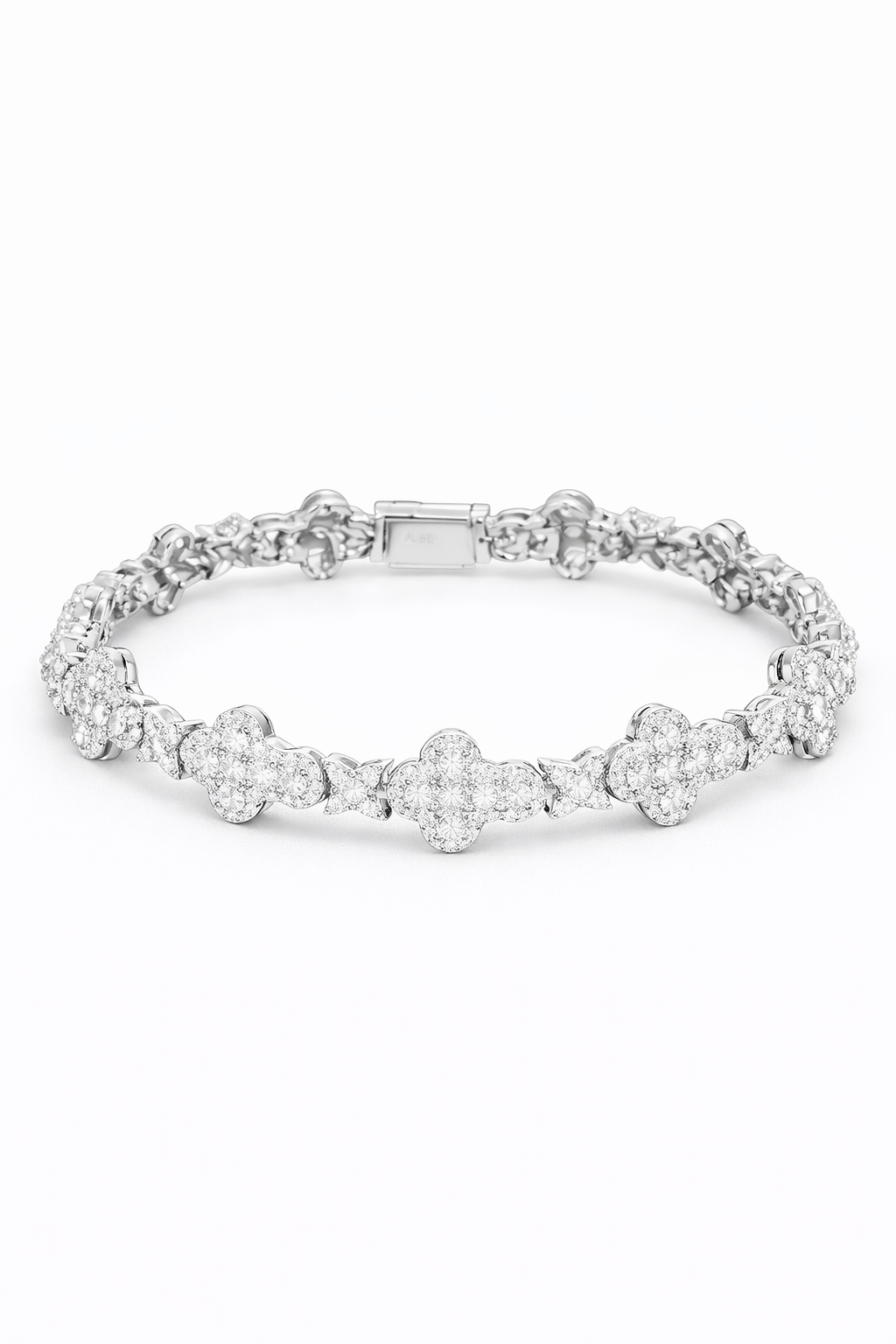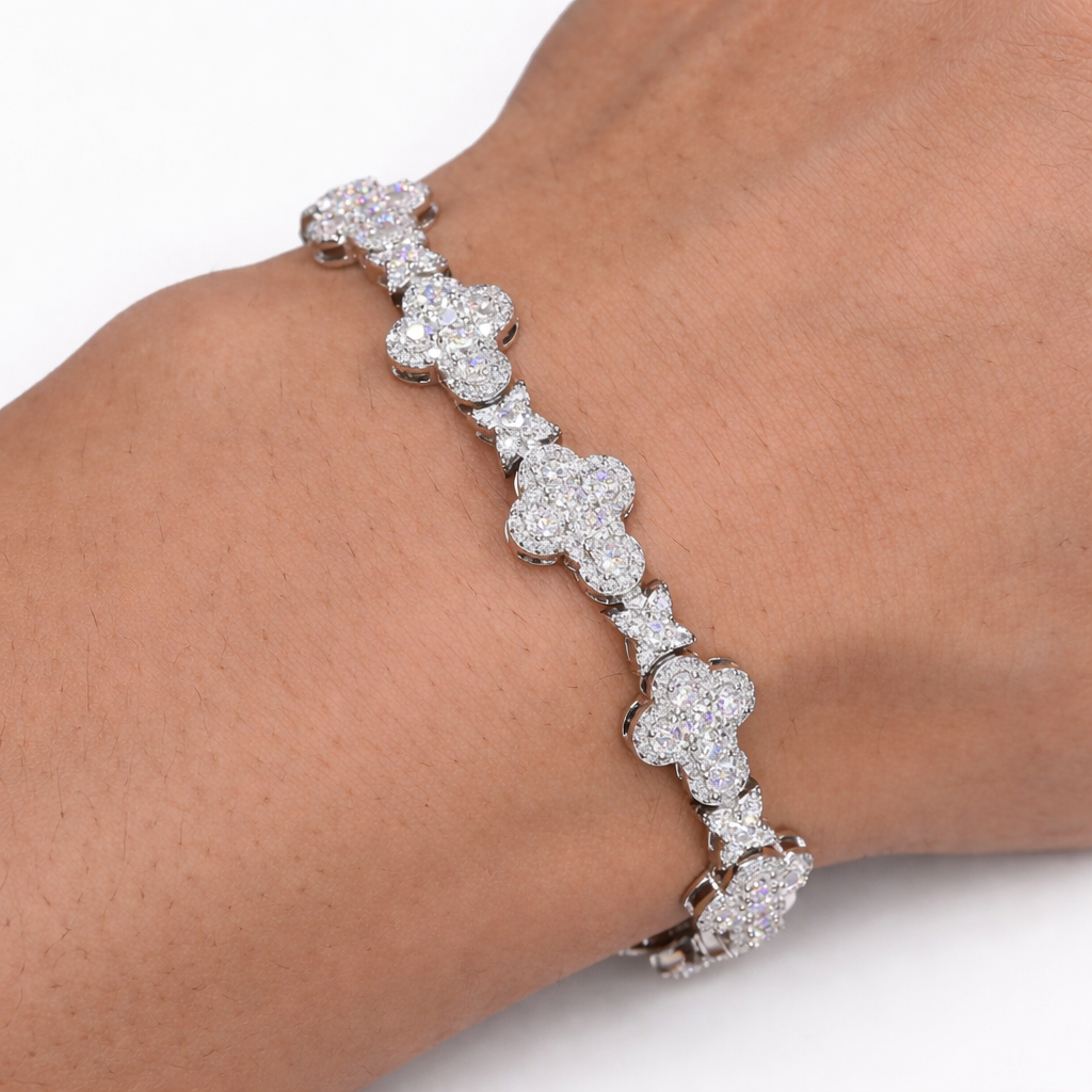 Radiating celestial elegance and bold craftsmanship, the Star Cross Link Bracelet is a powerful fusion of faith, ambition, and luxury. Featuring intricately connected star-cross links, each fully encrusted with precision-set stones, this design delivers a rhythmic brilliance that commands attention from every angle. Its seamless construction and substantial weight reflect authority and refinement, while the polished white gold finish elevates its timeless appeal. More than a bracelet, the Star Cross Link stands as a symbol of guidance, strength, and elite prestige.